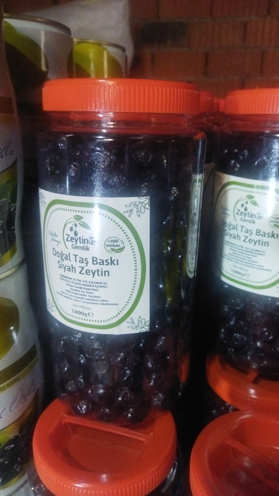 Ürün açıklaması Pet Ambalaj ,320-340 kalibre salamura yağlı, siyah  Gemlik zeytini. Zeytinin kalite adresi Gemlik Katırlı Köyünden üreticisi / çiftçisi