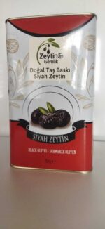 Teneke Ambalaj 320-340 kalibre, salamura yağlı, siyah Gemlik zeytini.